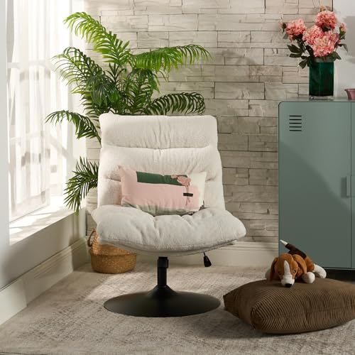 Meuble Cosy Fauteuil de Salon Chaise Pivotant sur 360° Fonction d'inclinaison Hauteur Réglable avec Assise Épais Dossier en Boulette Blanc
