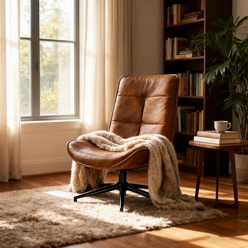 Meuble Cosy Fauteuil de Salon Confortable Pivotant, Chaise Relax Moderne avec Hauteur Réglable, Dossier Inclinable et Pliable, en Suédine Doux et Pieds Métal, Marron