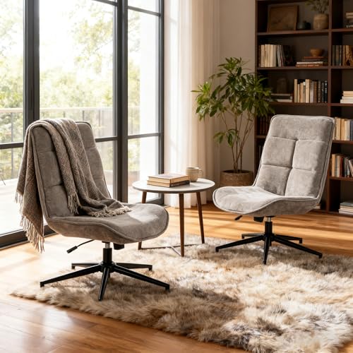 Meuble Cosy Fauteuil de Salon Pivotant Lot de 2, Chaise Relax Moderne avec Hauteur Réglable, Dossier Inclinable et Pliable, en Tissu Doux et Pieds Métal, Gris