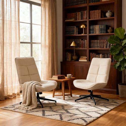 Meuble Cosy Fauteuil de Salon Pivotant Lot de 2, Chaise Relax Moderne avec Hauteur Réglable, Dossier Inclinable et Pliable, en Tissu Doux et Pieds Métal, Beige