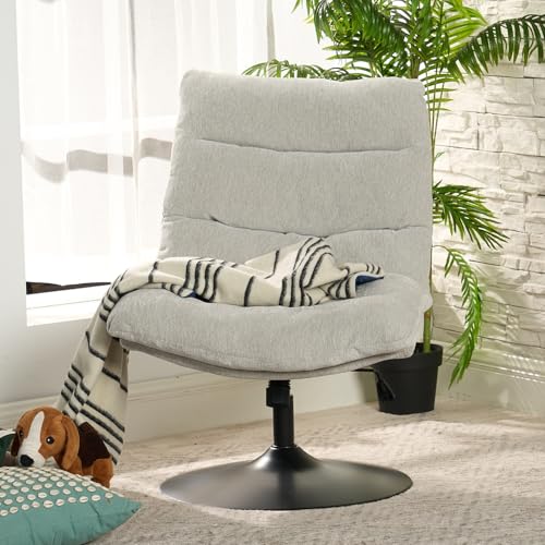 Meuble Cosy Fauteuil de Salon Chaise Pivotant sur 360° Fonction d'inclinaison Hauteur Réglable avec Assise Épais Dossier en Tissu Chenille Gris