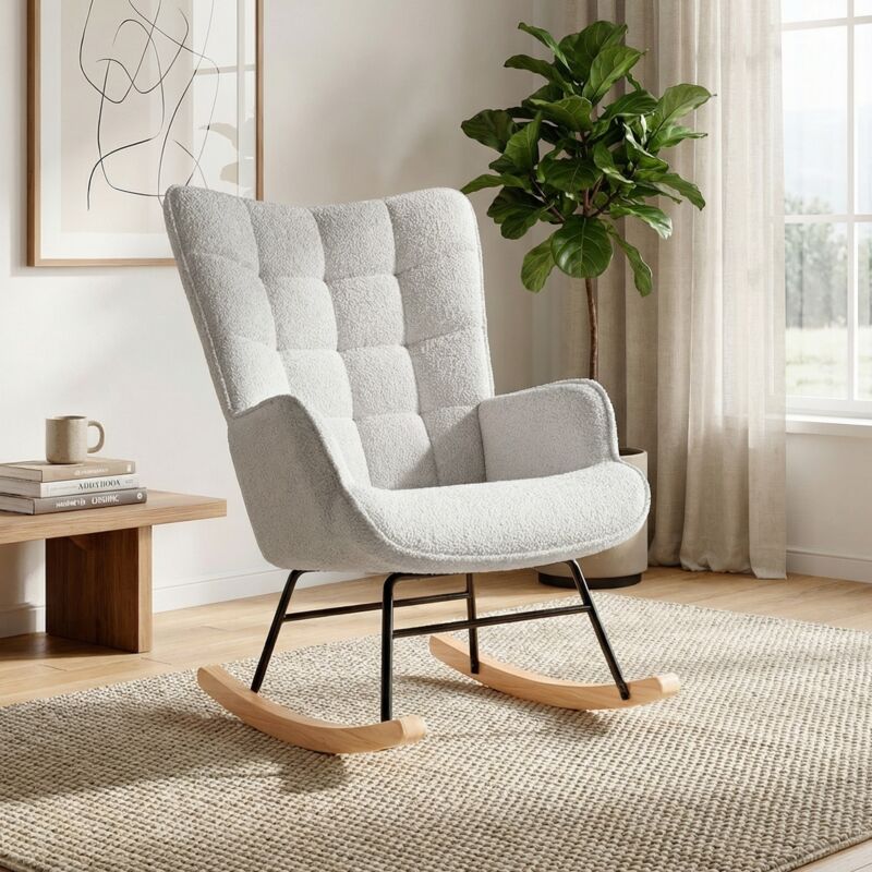 Fauteuil à bascule pour chambre d'enfant, fauteuil à bascule rembourré avec dossier haut, fauteuil à bascule confortable et élégant pour salon,