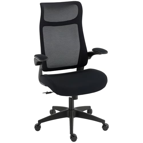Vinsetto Chaise Bureau Ergonomique, Fauteuil de Bureau avec Repose-Pieds, Chaise de Dessin à Dossier en Maille, Hauteur réglable, accoudoirs, Assise rembourrée et pivotante 360°, Noir
