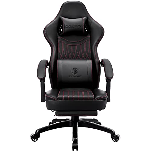 Dowinx Chaise de Jeu avec Coussin Printemps, Course Massage, Soutien Lombaire, Fauteuil Ergonomique Repose-Pieds, Bureau en Cuir synthétique Noir Bourgogne