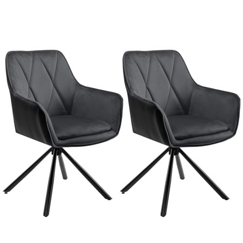 Lestarain Lot de 2 Chaises Pivotantes de Salle à Manger, Style Scandinave, Ergonomique, Fauteuil Rembourré, Velours + Similicuir, Noir, Gris Foncé, LCNI124001-2