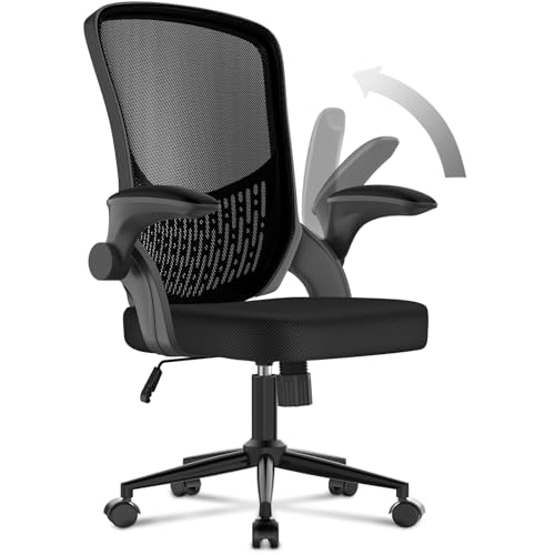 naspaluro Chaise de Bureau : Fauteuil Bureau Ergonomique avec Reversible Armrest,Soutien Lombaire,Hauteur Réglable Siege en Maille Respirante Convient à la Maison Bureau,Lecture,Noir