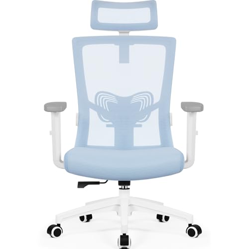 WOLTU Chaise Bureau Ergonomique, Fauteuil de Bureau avec Appuie-Tête et Accoudoir Réglables, en Maille avec Support Lombaire en Forme de C, Bleu