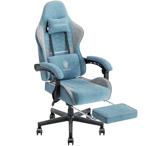 Dowinx Chaise Gaming Ergonomique, Fauteuil Gamer en Tissu Respirant avec Coussin Confortable à Ressorts Ensachés, Siège Gaming Massant avec Appui-Tête et Repose-Pieds Rétractable, 150 kg, Bleu-Gris