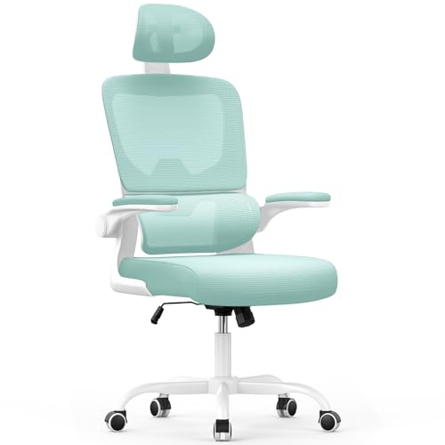 Chaise de Bureau Ergonomique: Fauteuil Bureau avec Support Lombaire en C,Dossier et Appui-tête Réglables,Reversible Armrest,Siege en Maille Respirante Convient à la Maison Bureau ,Lecture, Vert
