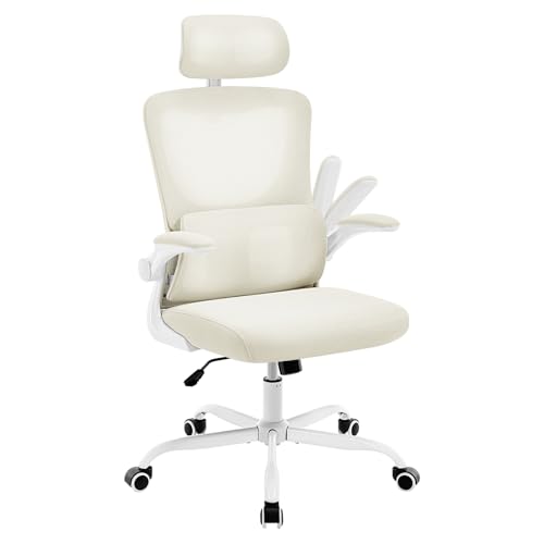WOLTU Chaise Bureau Ergonomique, Fauteuil de Bureau avec Appuie-Tête et Accoudoir Réglables, en Maille avec Support Lombaire en Forme de C, Beige