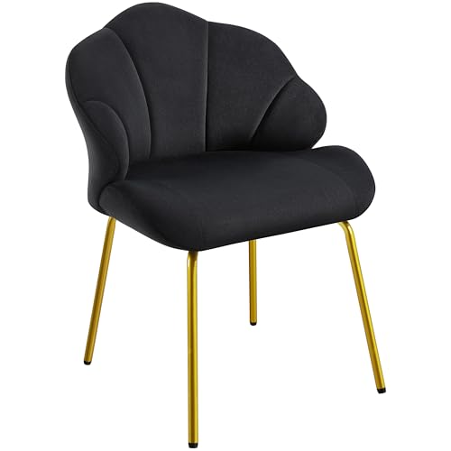Yaheetech Fauteuil de Salon Moderne, Design Coquillage, Chaise de Chambre à Coucher Confortable, Rembourré, Ergonomique, Fauteuil en Velours avec Dossier, Pieds en Métal Plaqué Or Noir