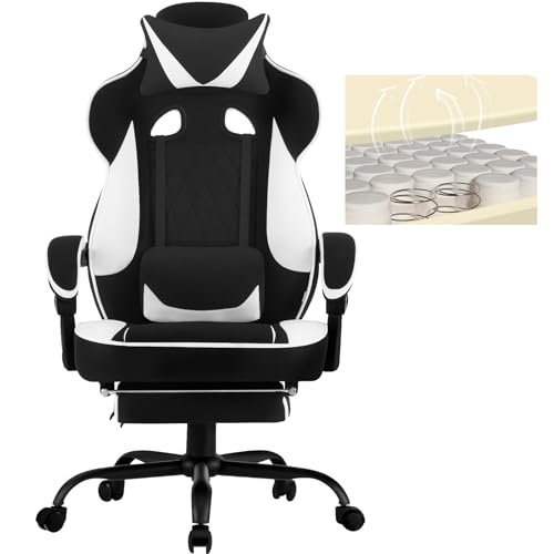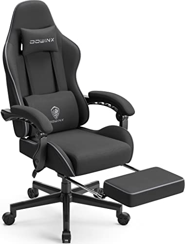 Dowinx Chaise Gaming Ergonomique, Fauteuil Gamer en Tissu Respirant avec Coussin Confortable à Ressorts Ensachés, Siège Gaming Massant avec Appui-Tête et Repose-Pieds Rétractable, 150 kg, Noir