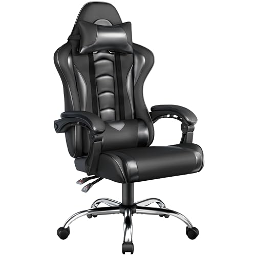 Yaheetech Chaise Gaming Massante Ergonomique Fauteuil Gamer Dossier avec Lombaire et Appui-tête Hauteur Réglable Similicuir Charge 136kg Noir