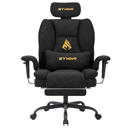 Symino Chaise de Bureau Ergonomique Fauteuil avec Repose-Pieds - Siège en Imitation Daim Noir - Réglable Hauteur et Accoudoirs - Capacité 130kg
