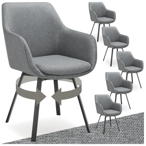 tectake® Lot de 6 Chaise pivotante de Salle à Manger Moderne Fauteuil salon Chaise Ergonomique Rembourrée Confortable Chaise Design Meuble salon pour Salle à manger, salon, coiffeuse, chambre, cuisine