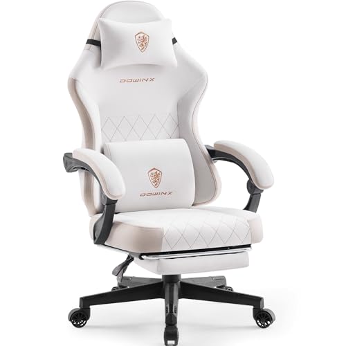 Dowinx Chaise de Gaming en Tissu avec Coussin de Printemps, Soutien Lombaire et Repose-Pieds pour Adultes, Fauteuil de Jeu Ergonomique, Grand et Haut, pour Jeux de Bureau, 135 kg, Beige