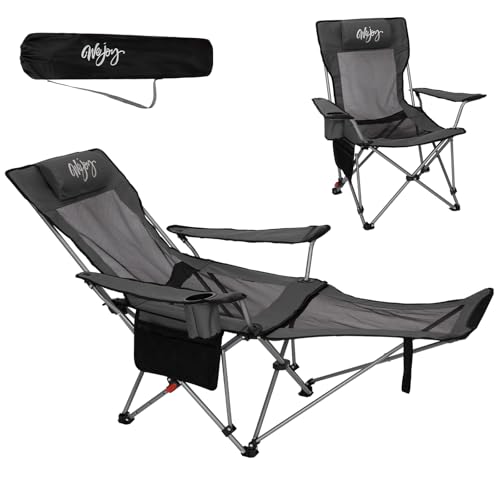 #WEJOY chaise de camping 2 en 1 pliable 180 kg avec repose-pieds, dossier réglable en 4 positions, fauteuil de relaxation, extérieur, gris/noir