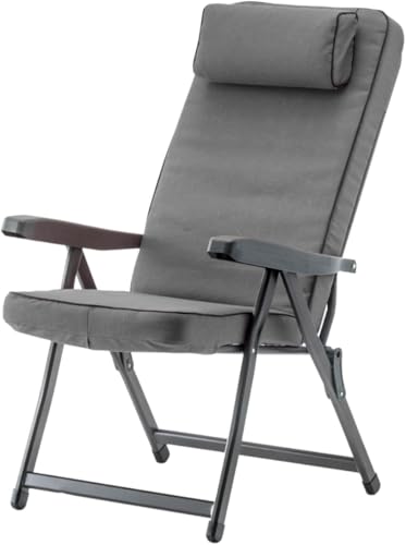 greemotion Chaise de Jardin Pliable Toulouse en Acier Revêtu de Plastique, Fauteuil d'Extérieur à Dossier Haut Réglable en 5 Niveaux, env. 58x108x64 cm, Gris