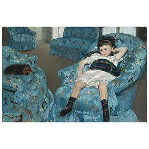 Legendarte - Tableau, Impression Sur Toile - Petite Fille Dans Un Fauteuil Bleu Mary Cassatt cm. 50x70