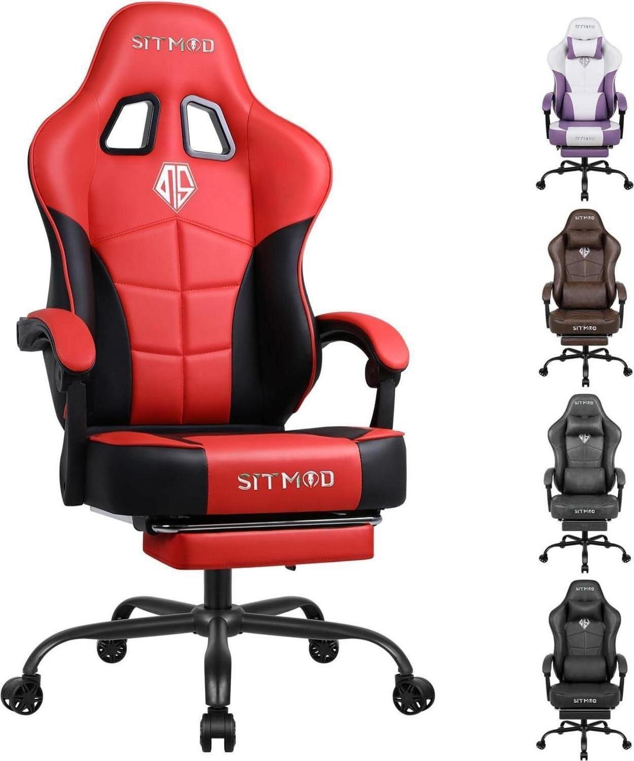 WOLTU Chaise Gaming, Chaise Bureau Ergonomique en PU Cuir, Fauteuil Gaming avec Repose-Pieds, Pivotante Grand Dos & Grand Siège pour Personne Lourde, Livestream Siege Gamer, Noir+Rouge