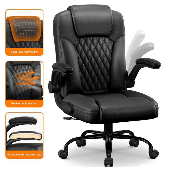 Chaise Gaming Ergonomique en Cuir Noir – Fauteuil Gamer Inclinable à 120° Accoudoirs Repliables à 90° Charge Max 120 kg