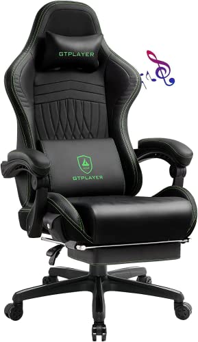 GTPLAYER Chaise Gaming Repose-Pieds Haut-Parleur Bluetooth Fauteuil Gamer Ergonomique Siège Pivotante avec Accoudoirs Synchronisés et Coussin Lombaire Plus Favorable (Vert-Noir)