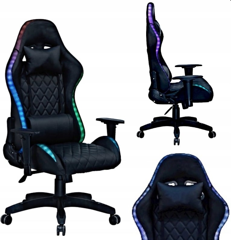 Delman Gaming Chair Chaise de bureau Ergonomique RGB LED Eclairage Cuir synthétique Fauteuil avec repose-pieds Piétement métallique 02-0055BK