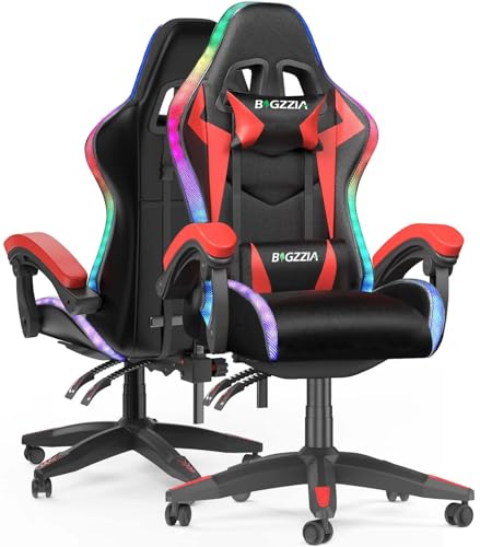 bigzzia Ergonomique Chaise Gaming avec éclairage LED Effets, Dossier Hauteur Réglable, Fauteuil Gaming LED avec Lombaire&Appui-Tête Appui, Chaise de Bureau Adultes Enfants (avec LED Effets, Rouge)