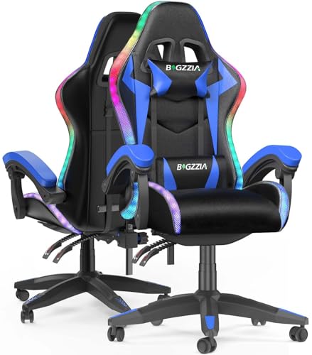 bigzzia Ergonomique Chaise Gaming avec éclairage LED Effets, Dossier Hauteur Réglable, Fauteuil Gaming LED avec Lombaire&Appui-Tête Appui, Chaise de Bureau Adultes Enfants (avec LED Effets, Bleu)