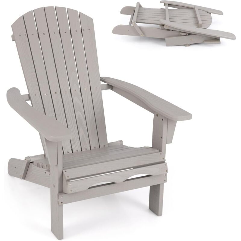 COSTWAY Chaise Adirondack en Bois de Sapin, Chaise de Jardin Exterieur Pliable, Siège à Lattes, Dossier Incliné et Haut, Fauteuil Exterieur pour