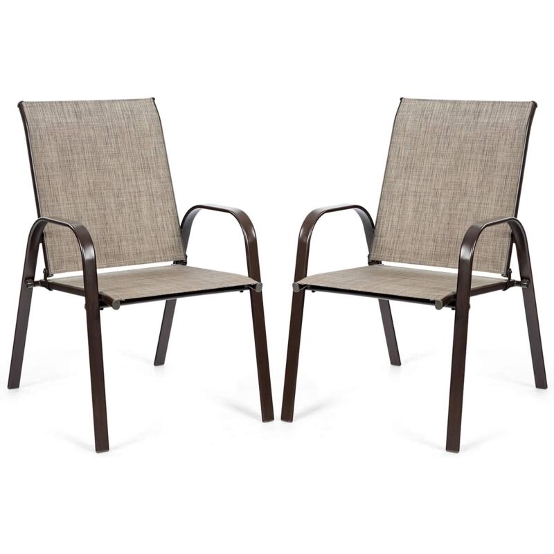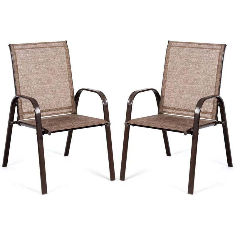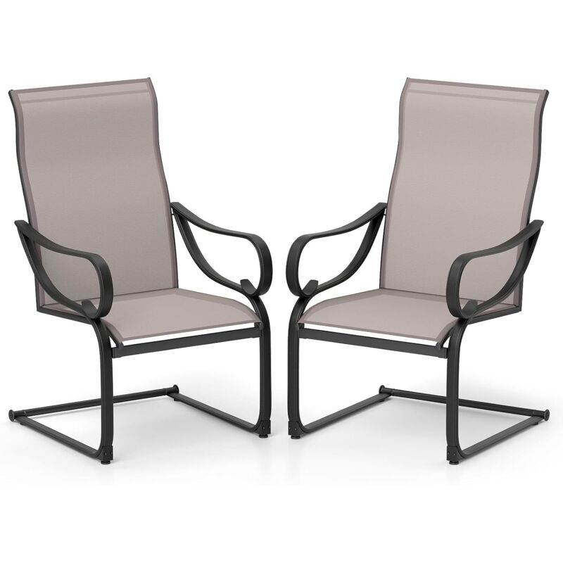 Goplus - Lot de 2 Chaises de Jardin Pliantes, 2 Chaises de Terrasse en Métal avec Accoudoirs et Dossier Haut, Tissu Respirant, Fauteuil Confortable