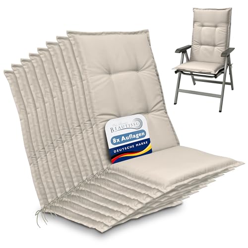 Beautissu Set de 8 Coussin Fauteuil Jardin Haut Dossier 120x50 cm Base HL – Antidérapant & Résistant Lumière UV 5 – Confortable Matelas Coussin Assise Chaise Exterieur Jardin Terrasse Balcon – Nature