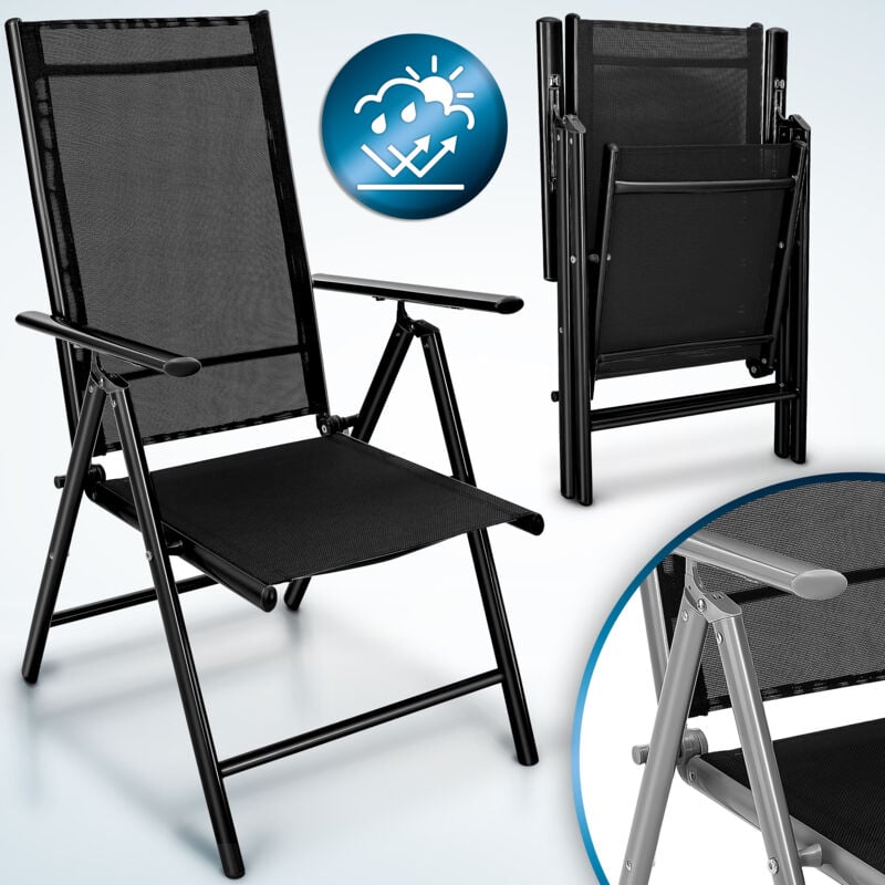 tillvex Chaise de jardin pliante anthracite en aluminium Chaise à dossier haut avec accoudoirs Chaise pliante réglable Fauteuil pliant pour balcon,