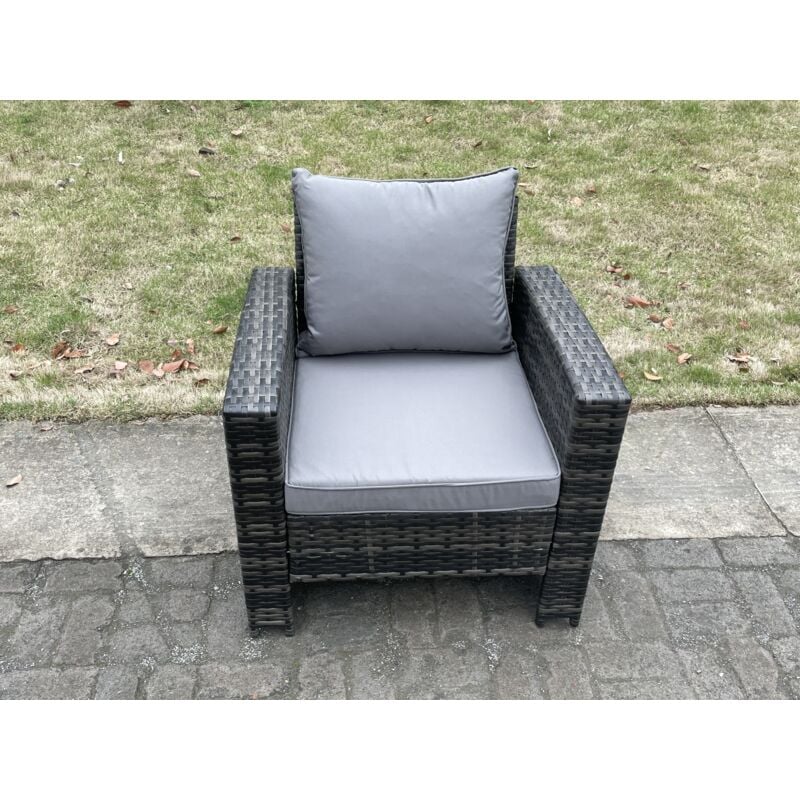 Fimous - Dossier haut Ensemble de meubles de jardin en rotin im Freien Einzelsofa Fauteuil Terrassenmöbel ave Coussin