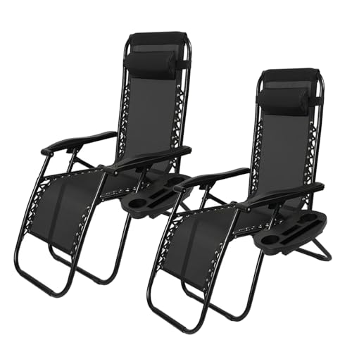 SPXMQSS Chaise Pliante Camping Transat Jardin Exterieur Fauteuil Jardin Chaise Pliante Confortable Bain De Soleil Chaise De Jardin Exterieur Black 2pcs