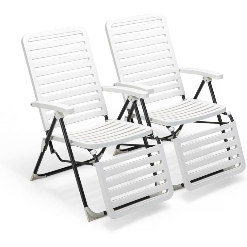 Chaises inclinables de jardin lot de 2 Plastique Blanc - Chaise De Jardin - Chaise Pliante - Mobilier De Jardin - Fauteuil De Jardin - Terrasse