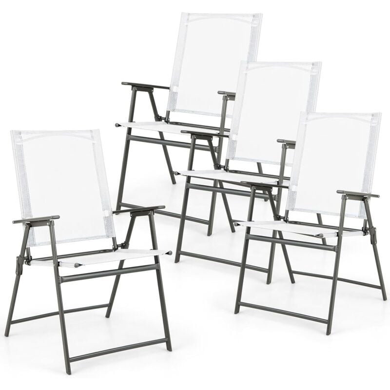 GOPLUS Lot de 2 Chaises Pliante Jardin Exterieur, Fauteuil Balcon Structure en Métal et Assise et Dossier Respirants, 67 x 61,5 x 78 CM,pour