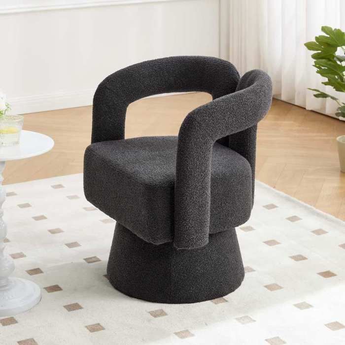 Fauteuil d'appoint pivotant 360° rond large rembourrage tissu moelleux couleur gris foncé multipièce