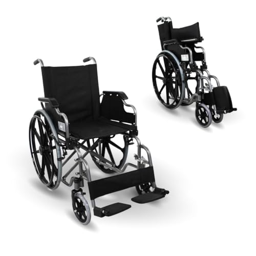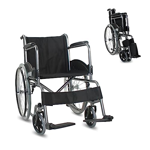 Mobiclinic®, Fauteuil roulant pliable, Mod. giralda, Marque européenne, Léger, Chaise roulante, Accoudoirs pliables et repose-pieds amovibles, Acier, Assise 46 cm, Noir