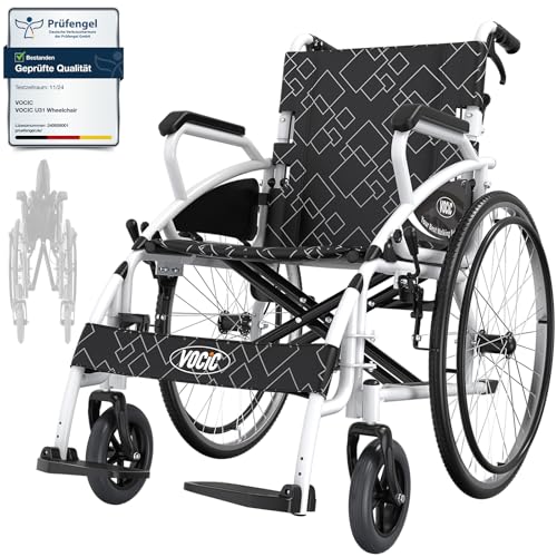 VOCIC U31 Fauteuil roulant pliable leger 150KG,Aluminium Chaise roulante handicapé stable et robust,Fauteuil roulant de transport avec roues arrière 60cm pour tous les terrains,Garantie 5 ans|Blanc