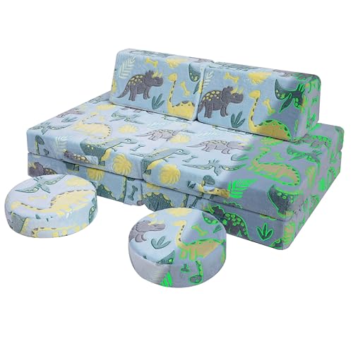 MeMoreCool Canapé de jeu pour enfants - Fauteuil modulaire pour enfants pour salle de jeux - 8 pièces - Dépliable - Kit de jeu - Canapé pour enfant avec fonction couchage - Pour fille et garçon