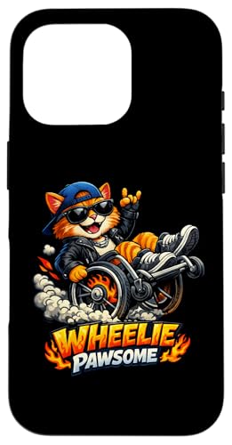 Chat en Fauteuil Roulant Qui Saute à roulettes Pawsome drôle Cool Mignon Coque pour iPhone 16 Pro
