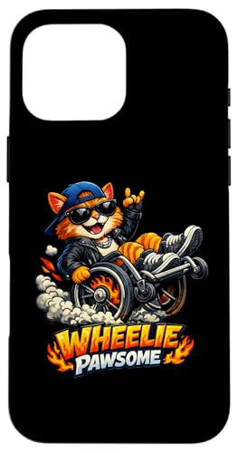 Chat en Fauteuil Roulant Qui Saute à roulettes Pawsome drôle Cool Mignon Coque pour iPhone 16 Pro Max