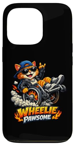 Chat en Fauteuil Roulant Qui Saute à roulettes Pawsome drôle Cool Mignon Coque pour iPhone 13 Pro