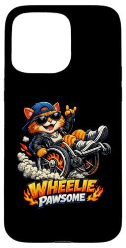 Chat en Fauteuil Roulant Qui Saute à roulettes Pawsome drôle Cool Mignon Coque pour iPhone 15 Pro Max