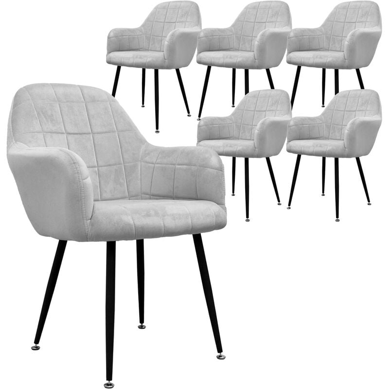 Lot de 6 Chaises de Salle à Manger Cuisine Salon Séjour - Gris - Assise Siège Rembourrée en Velours Structure en Métal Fauteuil Rétro avec Accoudoirs