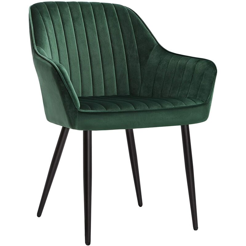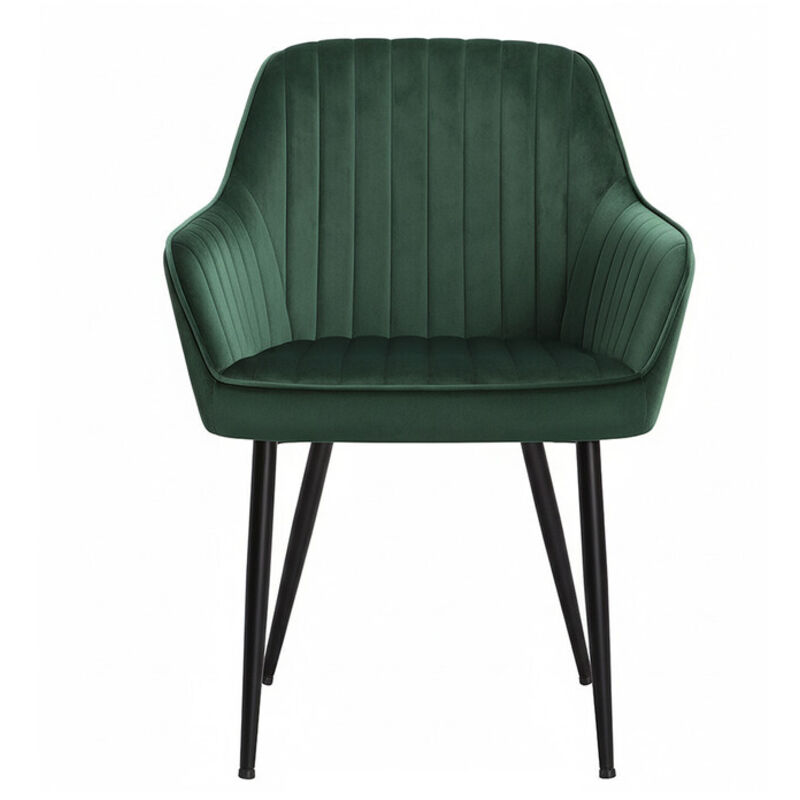 Chaise fauteuil en velours avec accoudoirs pour salle à manger Karta - Vert foncé