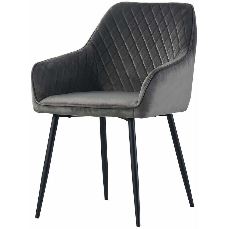 Chaise Salle à Manger, Fauteuil en Velours, Rembourrée, avec Accoudoirs, Charge Max. 120 kg, Pieds en Métal, pour Salle à Manger, Gris et Noir d'Encre