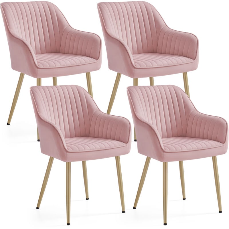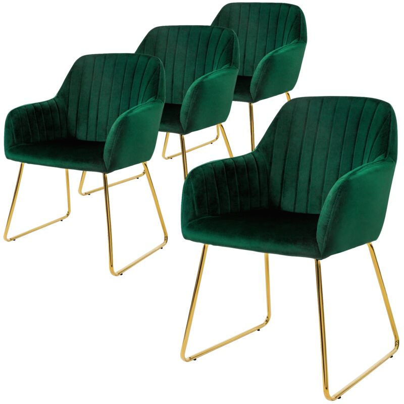 Ecd Germany - Lot de 4 Chaises de Salle à Manger - Siège Rembourrée en Velours - Pieds en Métal - Fauteuil avec Dossier et Accoudoirs - Chaise de