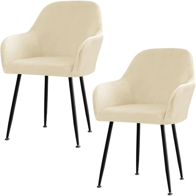 WOLTU Lot de 2 Chaises de Salle à Manger, Fauteuil en Velours, Rembourrée, avec Accoudoirs, Pieds en Bois Massif, pour Cuisine Salon Chambre, Crème Blanc.